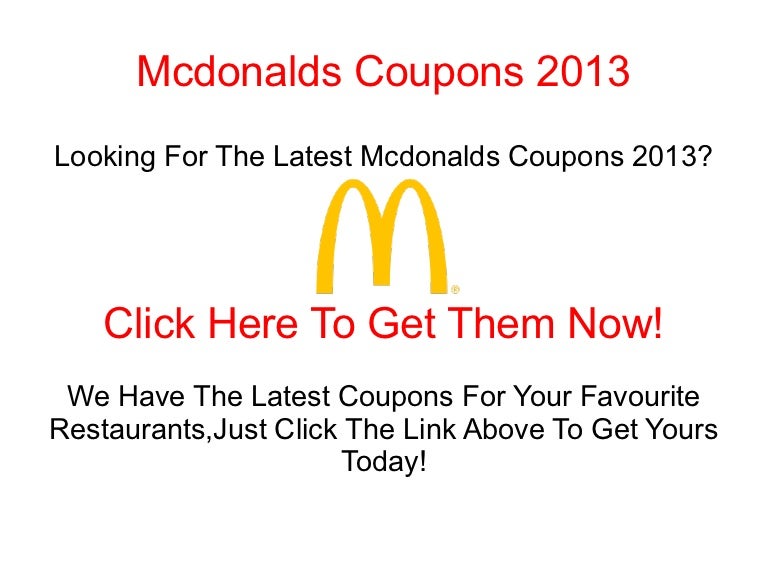 Up to 50% Off McDonalds Coupon: April 2022 Discount Coupons Up to 50% Off McDonalds Coupon: April 2022 Discount Coupons McDonalds Coupons Get Coupons by email! More About McDonalds McDonalds - I'm Lovin' it! Burgers and McDonalds, sounds quite synonymous, ain't it?
